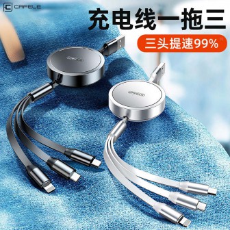 苹果安卓华为三合一加长手机数据线快充一拖三充电线便携多头通用