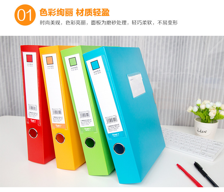 广博多色4只装加厚A4档案盒文件资料盒办公用品塑料文件夹收纳盒
