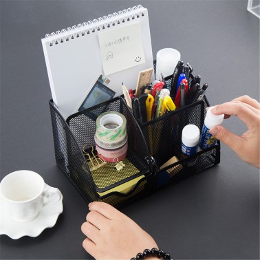 广博金属铁丝网笔插多功能笔筒学生用桌面收纳插笔器