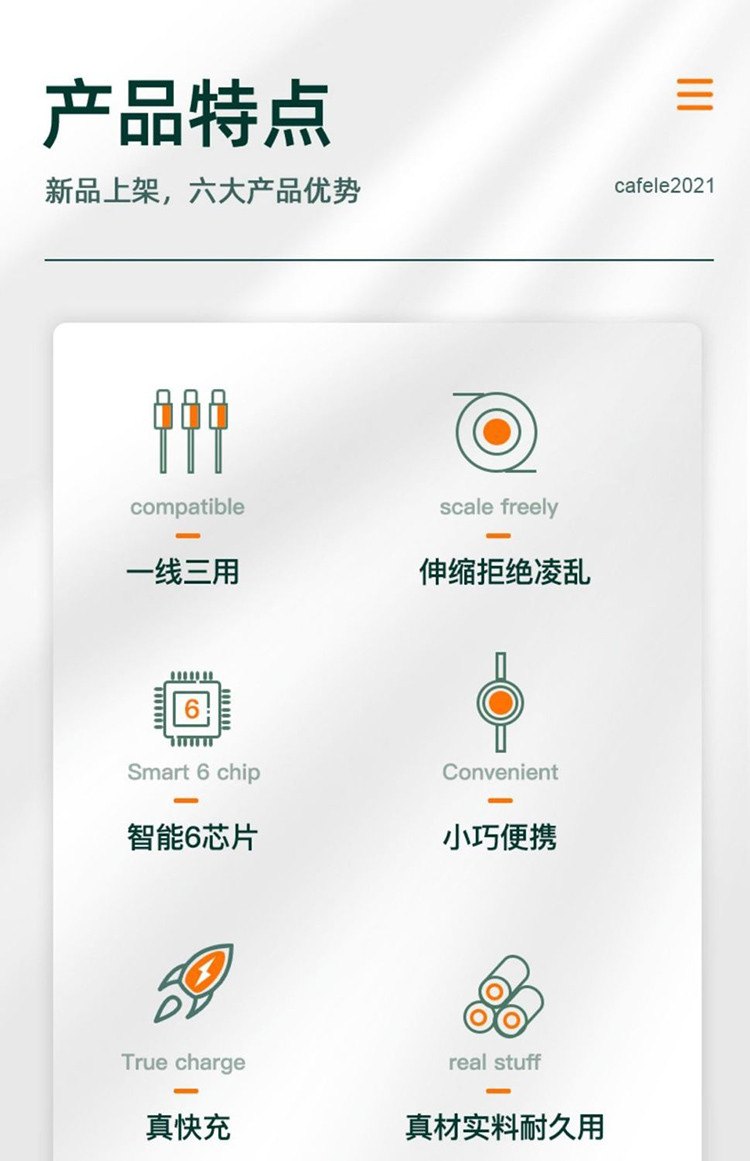 - 功能: 快充,可伸缩,智能分流