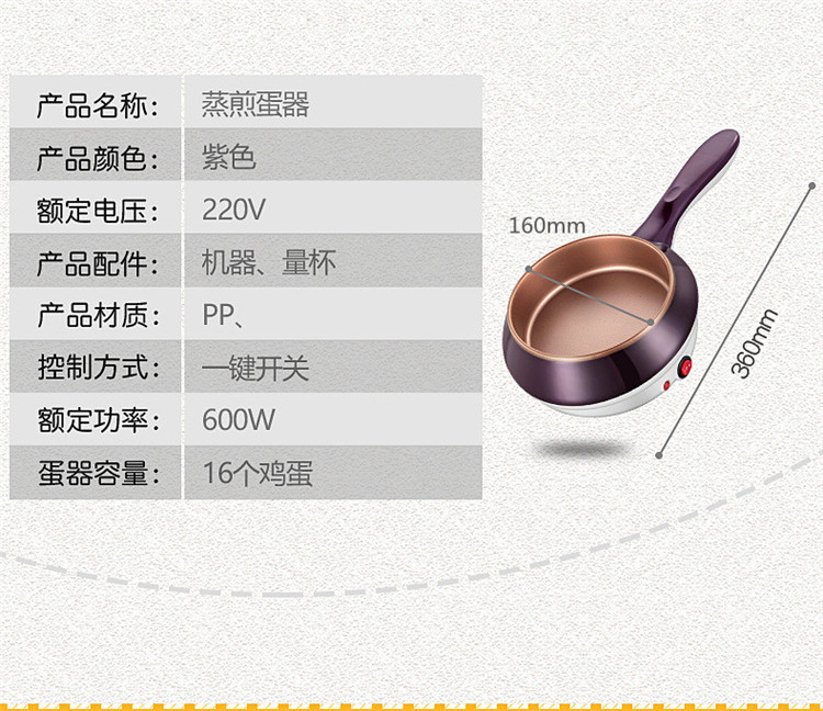 功能: 蒸蛋羹,煎蛋,蒸面食,煮蛋