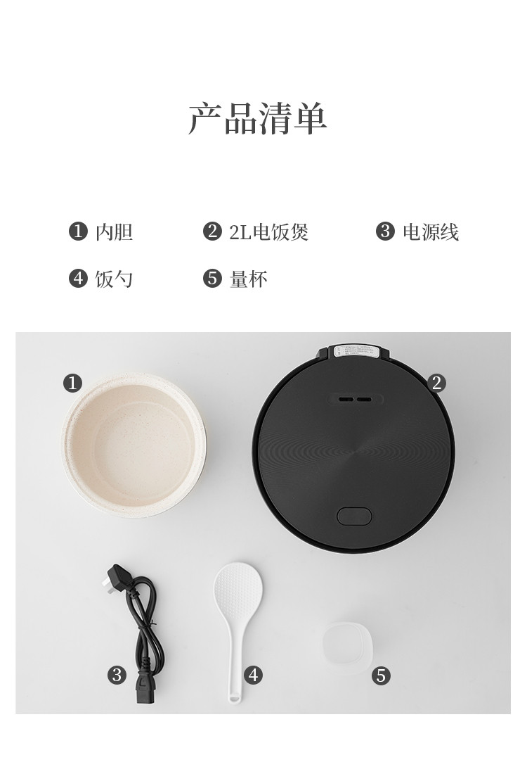 - 商品配件: 机身1件、电源线1件、说明书1件、饭勺1件、量杯1件