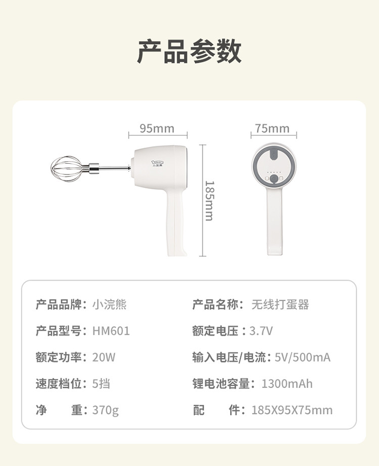 无线打蛋器充电式电动搅拌家用烘焙小型奶油自动HM-601